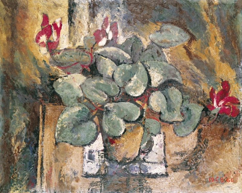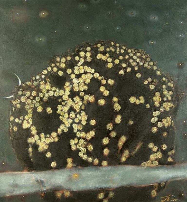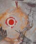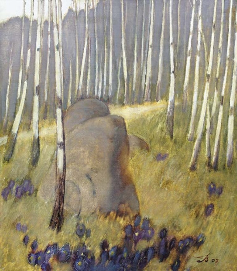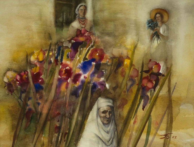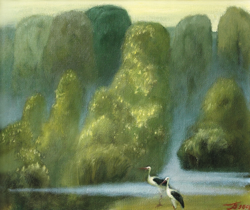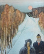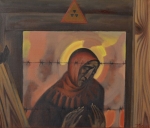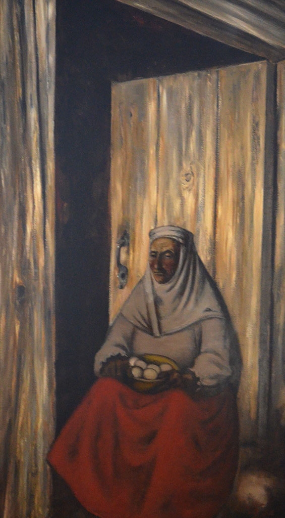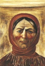 Честно говоря, не так часто встречаешь живопись, которая способна тебя действительно “пронять”, но вот две работы “Маці” (1983) и “Памяць” (1983) с моей точки зрения выделяются из общего ряда. “Маці” - собирательный образ, родившийся из маленького этюда собственной матери. Женский взгляд, в котором собрана вся гамма чувств. Когда эта картина была у нас на выставке, мимо не проходил ни один из посетителей. Даже с первоклассниками мы играли в игру - вспоминали с какими чувствами относятся к нам наши матери и искали их в этом портрете. Работа “Память” тоже достойна более детального внимания. Это образ бабушки Сынклеты, с намиткой на голове и миской полной яиц в руках, сидящей на крыльце старого дома и, как будто ожидающей своих детей. Тут вам и образность, и символизм, и национальная идентификация. При этом все выполнено одновременно и стилизованно и реалистично - условные доски из которых сбита дверь, хочется потрогать, хотя сделаны они широкими движениями крупного мастихина.