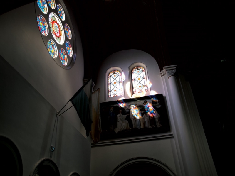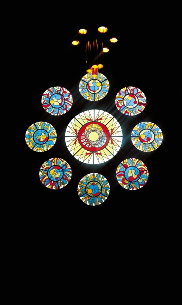 Или те же витражи для Дома кино (Красный костел). Ведь для этого здания Ващенко делал более сотни витражей и свое предложение интерьерного решения. Часть витражей демонтировали, а часть оставили. Редкий случай. Тут художнику просто удалось попасть в саму суть витража - идею “игры луча света”. Так что те витражные композиции, которые на нарушали “новой” концепции, сочли уместными и в костеле. Применительно к этой работе существует даже история, уже перешедшая в разряд городских легенд. Здание Дома кино буквально через несколько лет после реконструкции хотели снести, а на его месте выстроить новый кинотеатр. Заседание по этому поводу проходило там же. И вот на заседании появляется Петр Миронович Машеров. Как вспоминали очевидцы, день был ветреный, облака то закрывали солнце, то открывали. В общем - витражи «играли». Петр Миронович послушал, посмотрел, а потом выступил с пламенной речью – зачем такую красоту ломать? Его влияния хватило, чтобы остановить этот проект. И, если интерьер Дома кино помнят только люди постарше, да и то вхожие в свое время в это здание, то роспись «Асветнікі» (1970) для Дома учителя в Минске осталась до сих пор в целости и сохранности. Сейчас в этом здании находится лицей БГУ.