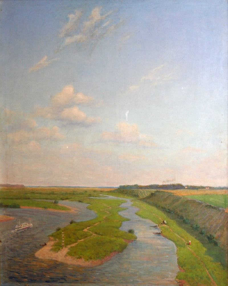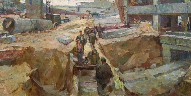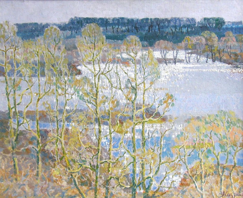 Особое место среди них занимает Борис Федорович Звиногродский (1896-1982). Даже самого неискушенного зрителя завораживает ощущение динамизма, безграничной пространственности и проникновенный лиризм его произведений. Индустриальный и городской пейзаж, любимые уголки в окрестностях города и река Сож, которой он посвятил ни одно произведение, во всем видна рука мастера, получившего столичное образование (Московское училище ваяния и зодчества), и пронесшего через все творчество верность русской классической школе. Автор стремился быть правдивым со своим зрителем в мельчайших деталях, предпочитая работать с натуры. Вот как он сам вспоминает процесс рождения картины: «Забрался на крышу дворца пионеров, откуда открылся удивительный, потрясающий воображение вид: до самого горизонта – разлив талых весенних вод. От воздуха, солнца и простора – голова кружится. Работалось легко, скоро. Одна лишь забота, как схватить и передать солнечный свет, как запечатлеть этот могучий размах реки, как написать воздух».